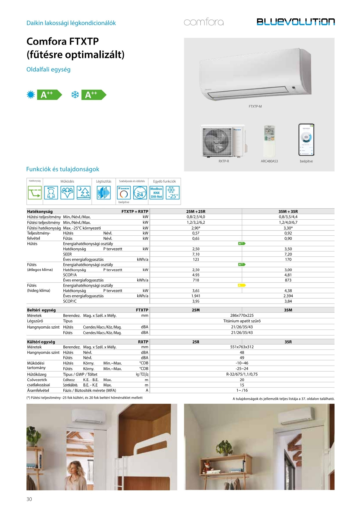 A Daikin FTXTP25K / RXTP25N8 FŰTÉSRE OPTIMALIZÁLTComfora Inverteres Split klíma fontos tulajdonságai: